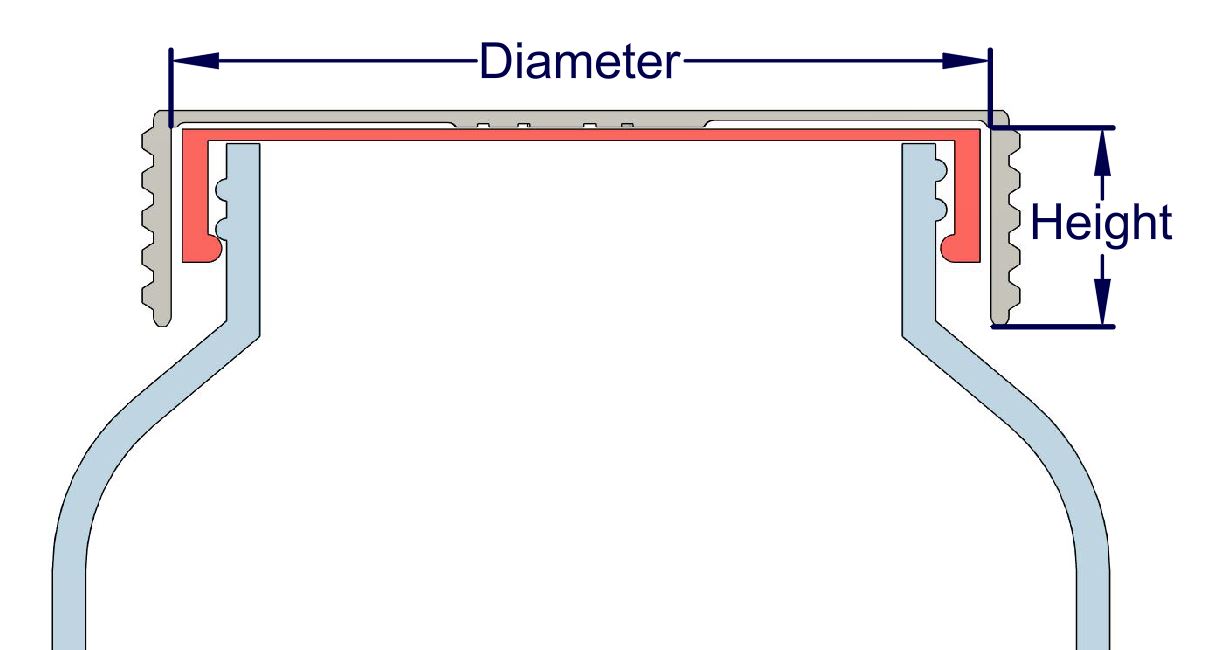 The diameter is the outermost edges of your lid. Height should be the equivalent to the height/width of your lid or greater. Covering the lid is usually desireable, but depending on the jar it can be greater.